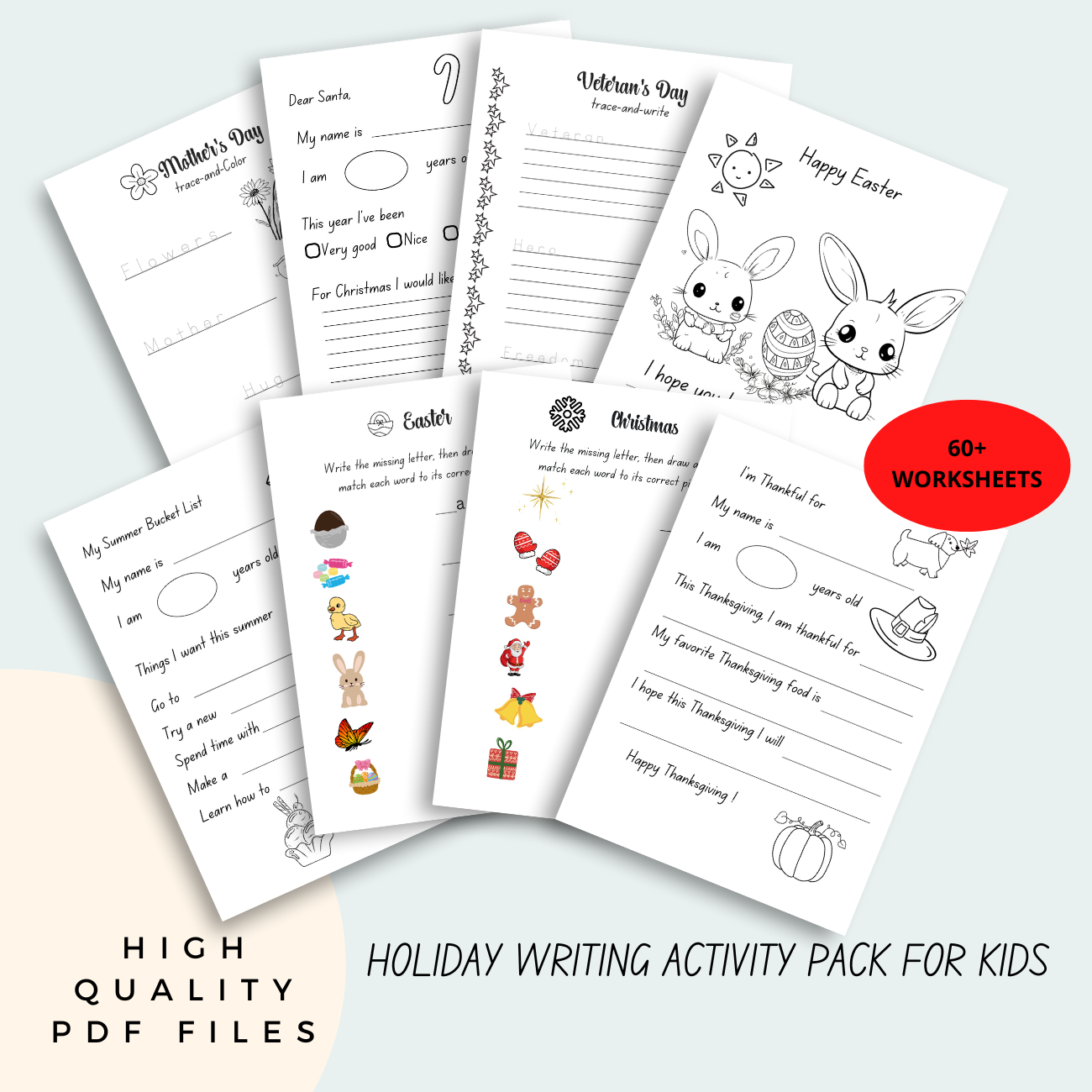 Keep kids engaged, learning, and excited for every season with this comprehensive bundle of over 60 worksheets! Perfect for teachers and parents, the Holiday Writing Activity Pack covers major holidays including: